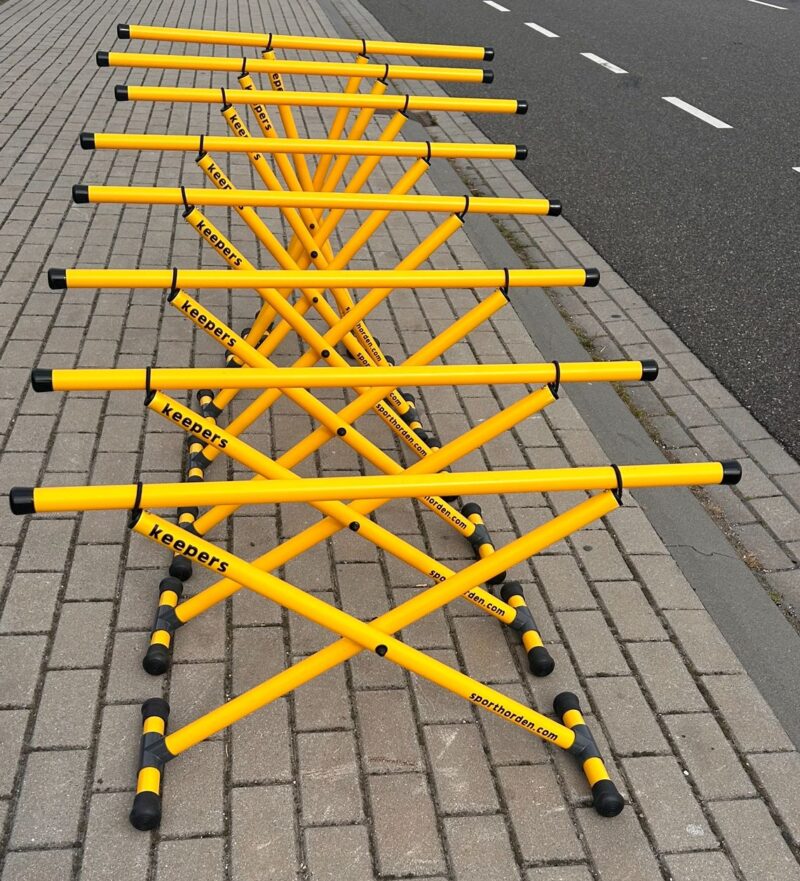 De basic horde kan tot maximaal 80 cm hoog. De Basic horde is verkrijgbaar in de kleur rood en geel. In overleg wellicht nog in andere kleuren.