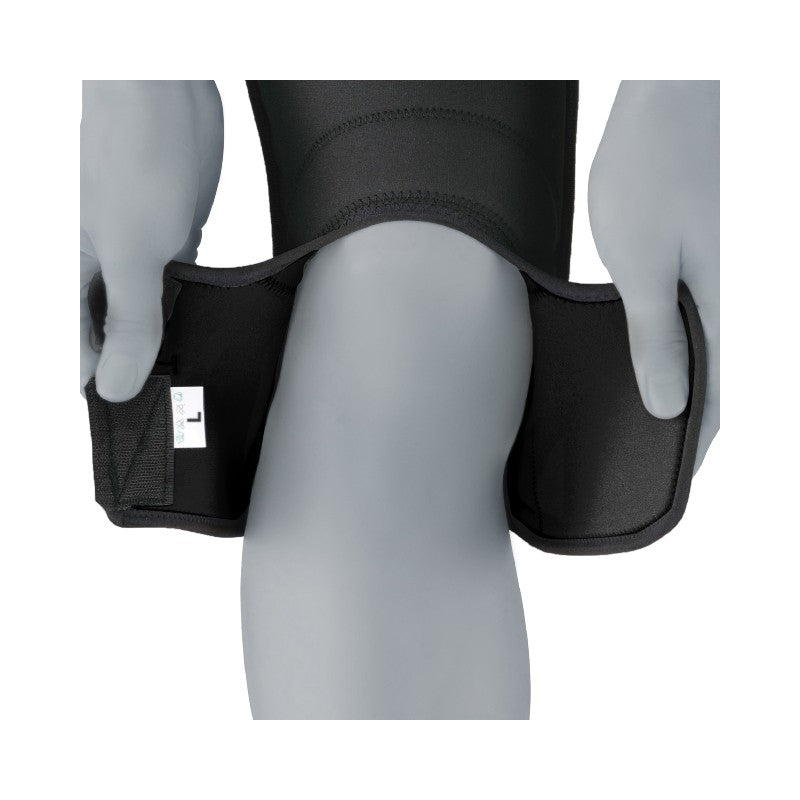 - Twee stevige sluitingen voor een perfecte pasvorm en compressie rond de knieschijf