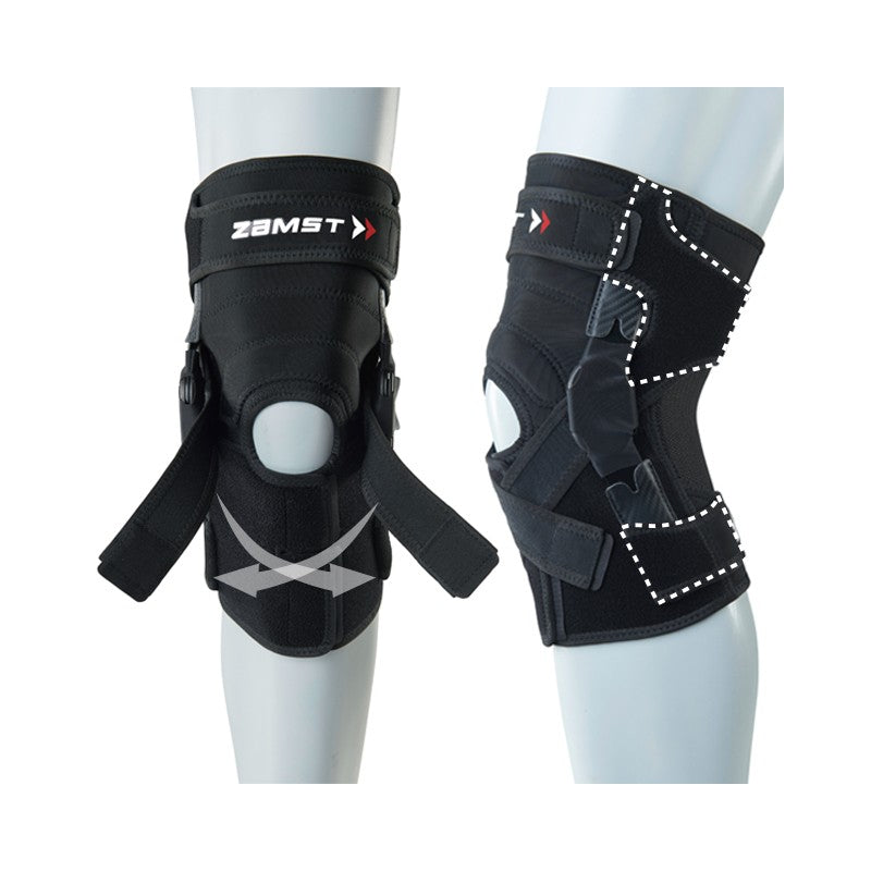 Zamst gebruikt lichtgewicht metalen scharnieren die zijn ontworpen om u soepel te laten buigen en strekken, terwijl de laterale beweging van de knie wordt geremd.